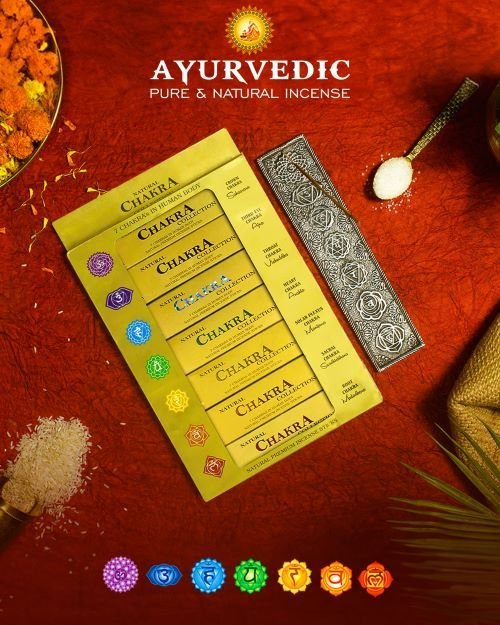 Chakra Natural Premium Incense Sticks Is Unique Blend of Rare herbs , Flowrs , Resins , Pure Sandalwood Powder, Aromatic Roots & natural Essential Oils free from Toxic Materials With the Help of Ancient Holy Books. Box Content : 7 Packs x 15 Sticks each