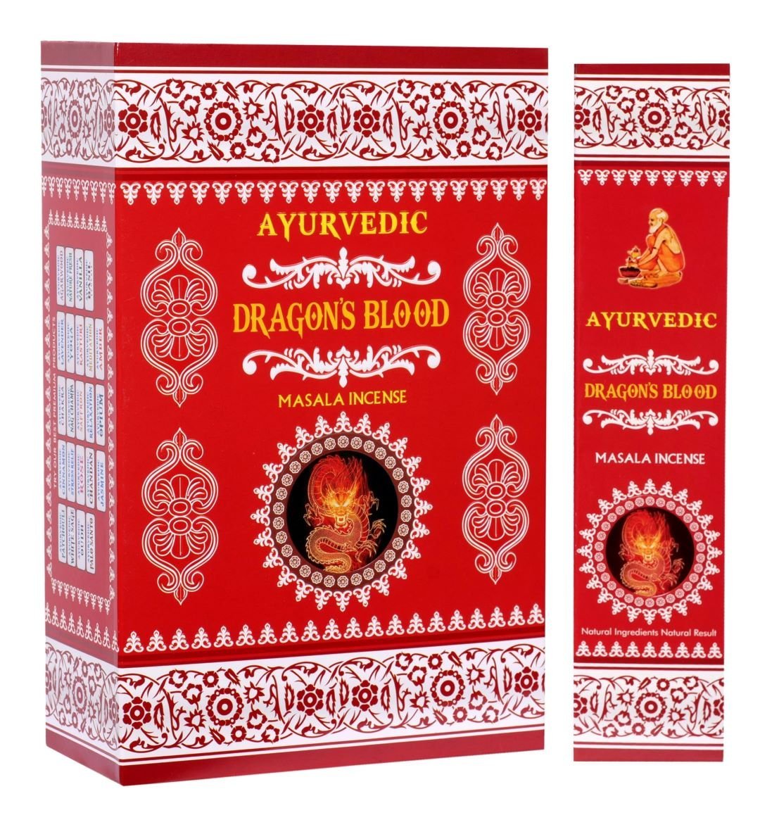 AYURVEDIC Dragons’s Blood Masala Incense Sticks implicate a unique blend of rare herbs, flowers, honey, resins and oils. It is free from toxic materials. In neopagan witchcraft, it is used to incerease the potency of spells for protection, love, banishing and sexuality. In new age shamanism it is used in ceremonies in a smilar way as the neopagans use it. Dragon’s blood has a sweet, soft and woody fragrance made from its tree.