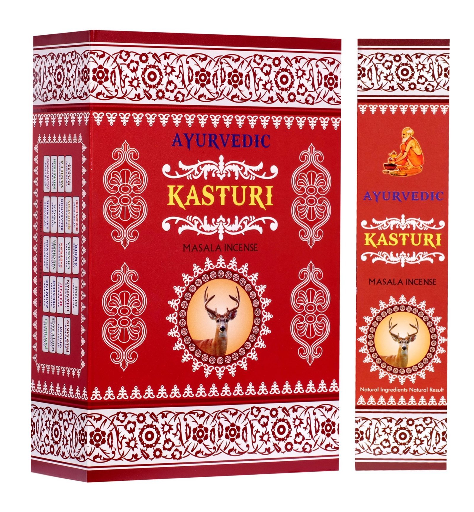 AYURVEDIC Kasturi Incense Sticks implicate a unique blend of rare herbs, flower, honey, resin and oils. It is free from toxic materials. Kasturi Incense emits a soothing fragrance that will mesmerize and delight your senses and help make your prayer routine delightful. Incense help one sooth and relax. It is also burned during meditation and meditation ceremonies. It purifies the surroundings and lifts ones mood by providing pleasing aroma and visual delight. This incense leaves long lasting fragrance that uplifts your mood and helps deepen your meditation.