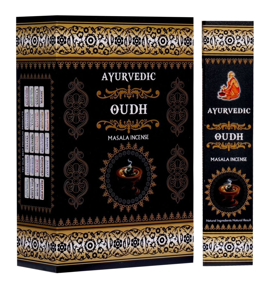 AYURVEDIC Oudh Masala Incense Sticks implicate a unique blend of rare herbs, flowers, honey , resins and oils. it is free from toxic materials.