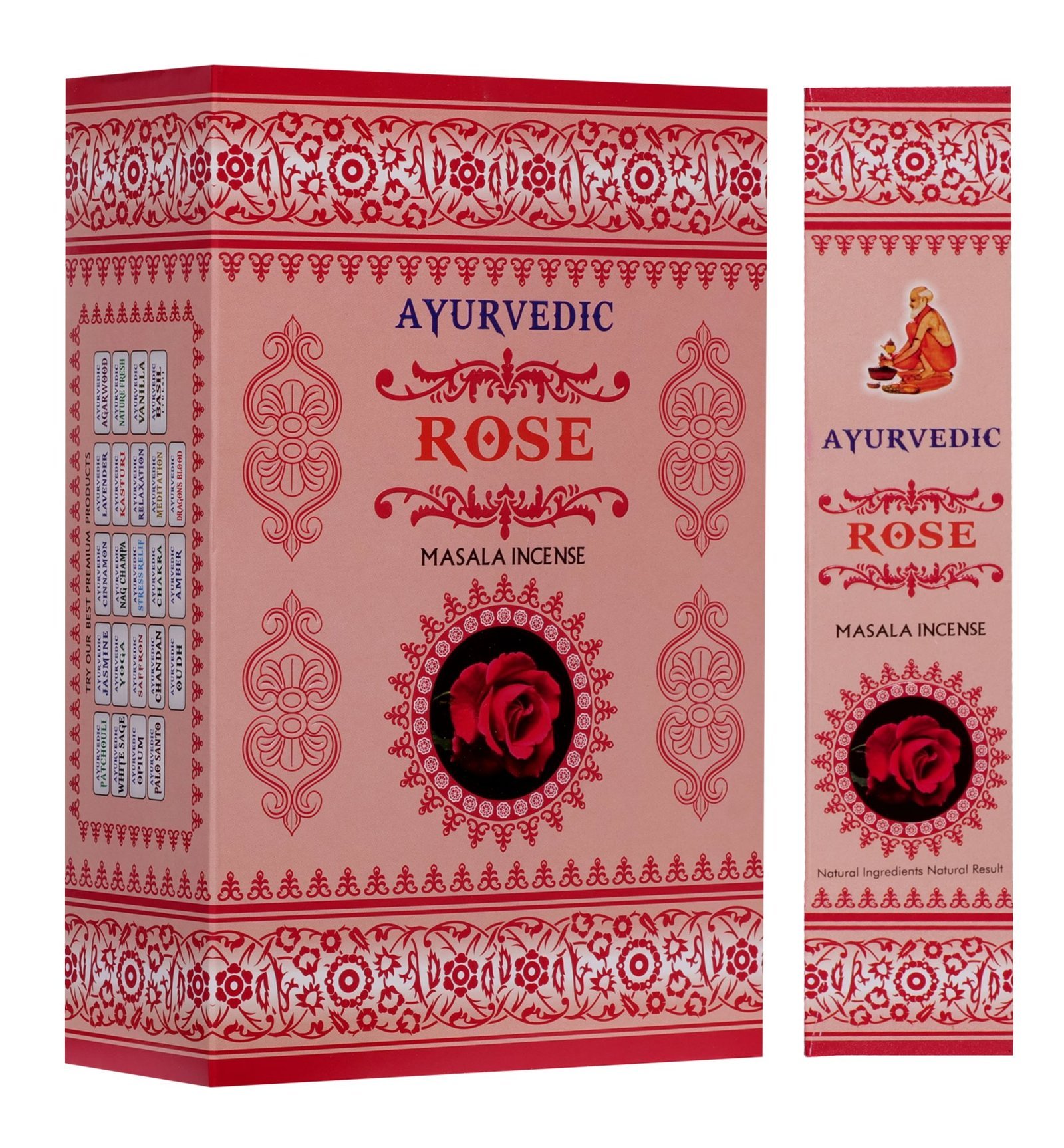 AYURVEDIC Rose Masala Incense Sticks implicate a unique blend of rare herbs, flowers, honey, resins and oils. Its is free from toxic materials. Rose incense has a sweet and confident fragrance that can bring a deeper element to our emotion. Fragrance of rose increases love compassion and devotion and gives a sence of security and spiritual attunement. It also promotes sleep, reduces anger, is gently anti-depressive, calms strife and instills a feeling of peace, happiness and confidence.
